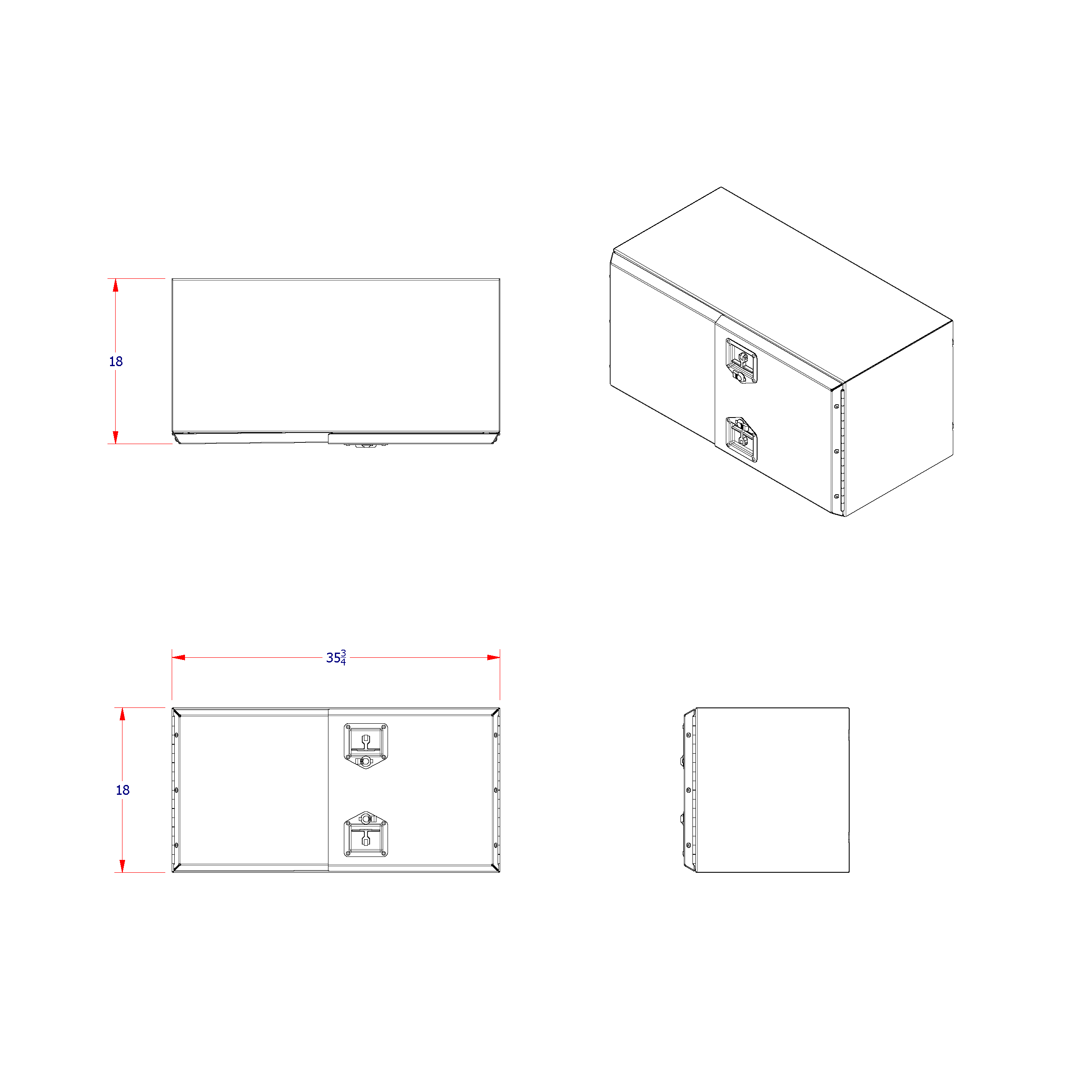 | Aluminum Tool Box 48W 18D 18H with 5-Bar Double Doors | 48 x 18 x 18 | 56 | * | ||