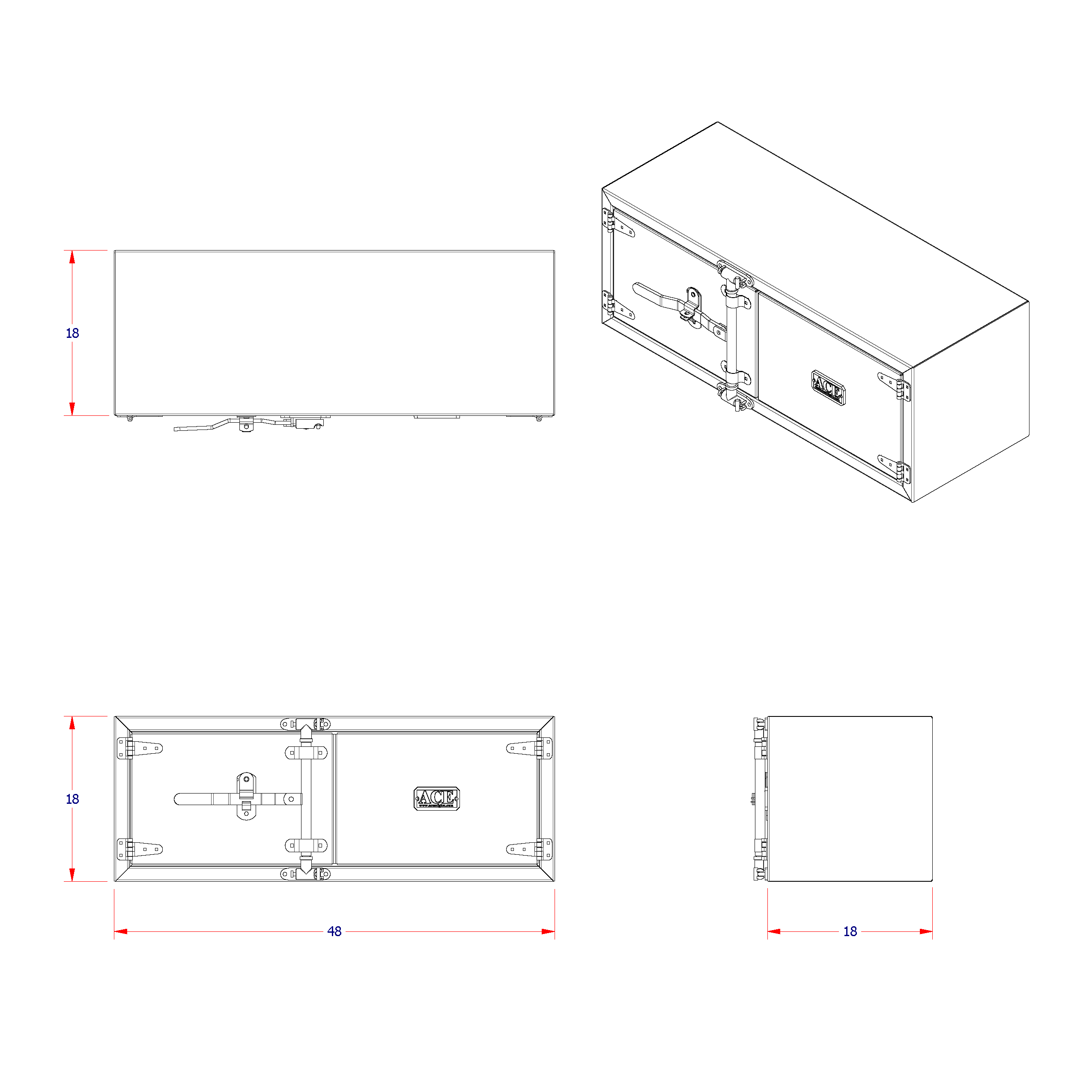 Aluminum Box 48Wx18Dx18H, double flush doors, upgraded stainless cam-lock - smooth