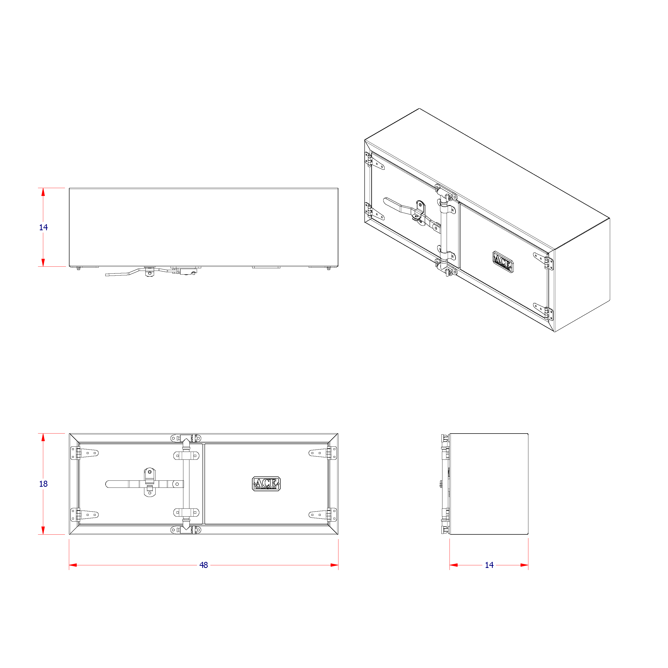 Aluminum Box 48Wx14Dx18H, double flush doors, aluminum cam-lock - smooth